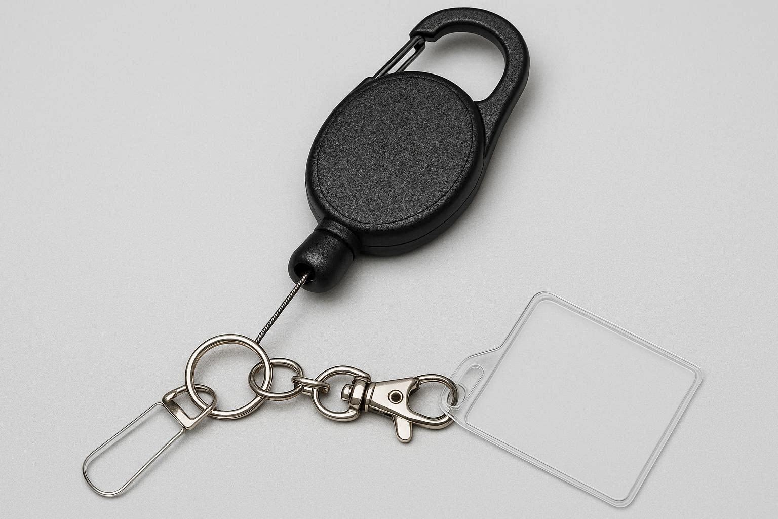 Simplify your daily access with our retractable reel carabiner, featuring a reinforced steel cord and a sturdy clip for your ID badges and keys. This professional grade tool allows you to scan your badge or open doors without removing your items, providing a convenient and secure solution for office environments, hospitals, and busy workplaces.